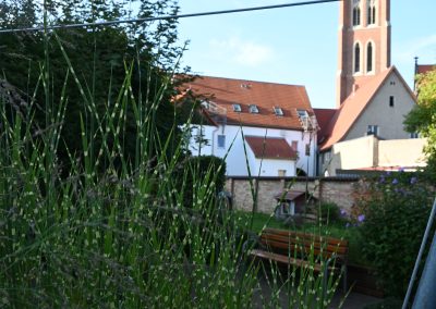 - Ein idyllisch gestalteter Innenhof bietet bei schönem Wetter gemütliche Plätze zum Verweilen.